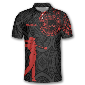 Perfect Swing Red Tribal Custom Golf Polo Shirts For Men, Long Sleeve Golf Shirts, Golf Lovers Gift