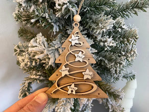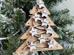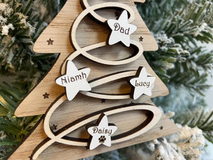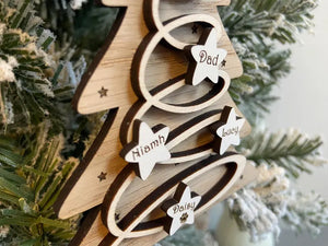 Personalised Family Name Christmas Tree Wood Ornament, Family Gift Ideas For Christmas, Personalised Tree Decorations