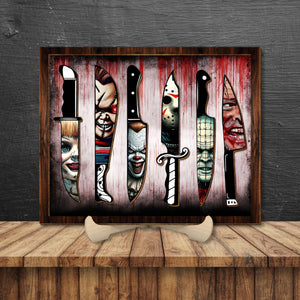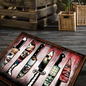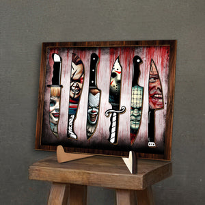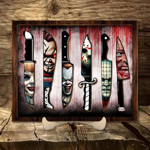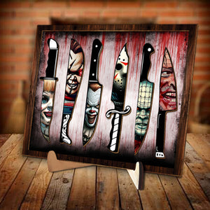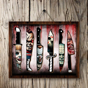 Transform your front door into a spooky statement with our 2 Layered Horrors Knife wooden Sign. Perfect for horror movie enthusiasts, this unique and eerie door hanger adds a chilling touch to your home decor, making it ideal for Halloween or year-round use. Customize it with your name or a special message to create a one-of-a-kind piece that celebrates your love for horror.