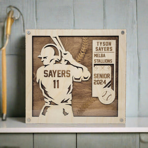 Crafted with care, these plaques consist of three layers for durability and a premium aesthetic. These are great for birthdays, season-end gifts, and make great baseball senior gifts.
