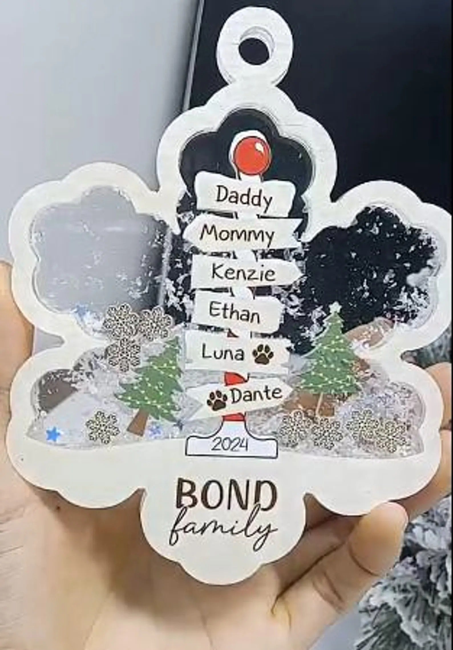 Personalized 4D Family Shake Ornament, Family Christmas Ornament, Christmas Tree Ornament