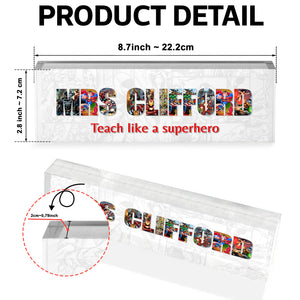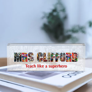Personalized Alphabet Superhero Acrylic Teacher Sign, Teacher Appreciation Gifts, Back To School Gift