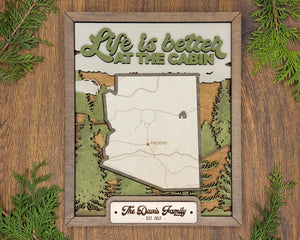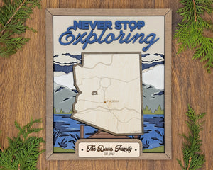 Personalized Arizona States Wood Frame, 50 States 2 Layers Wood Plaque, Gift For Nature Lovers