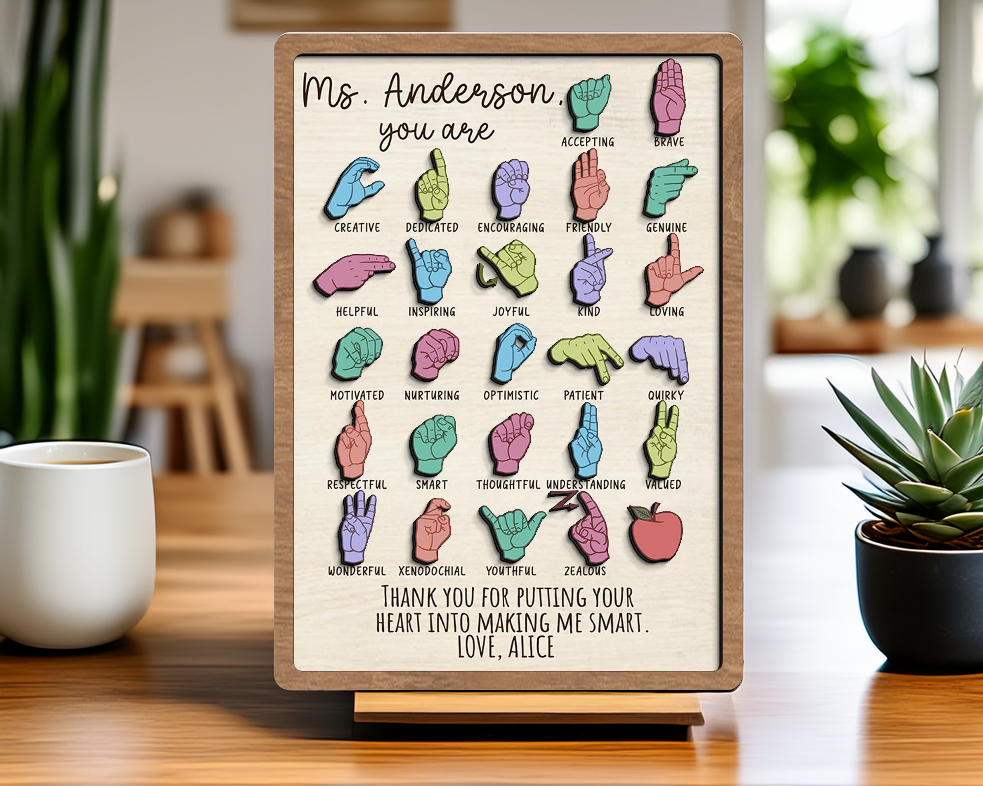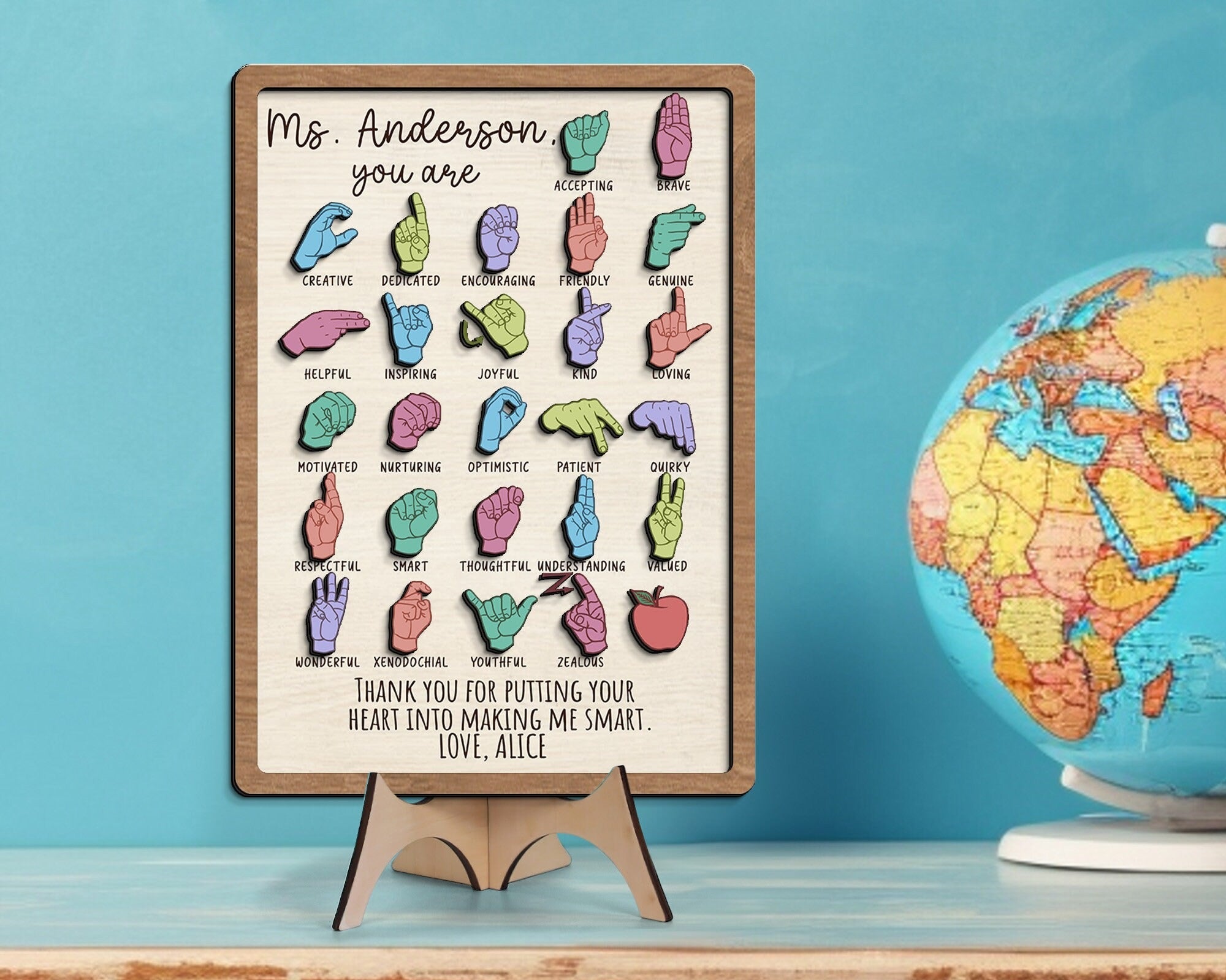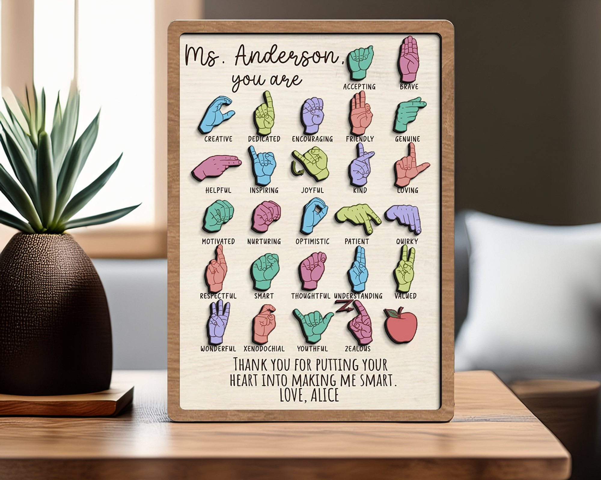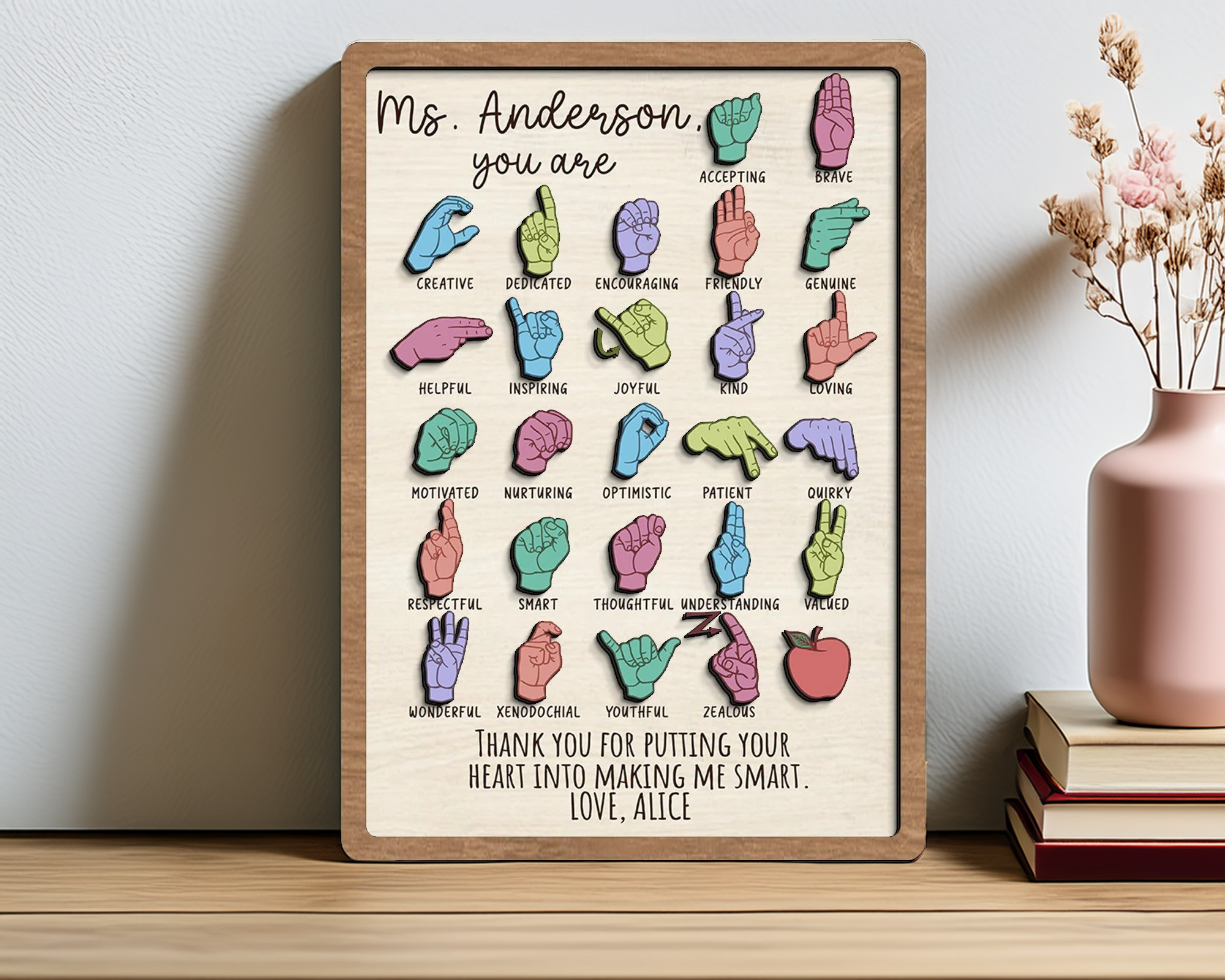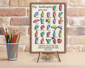 Brighten any classroom and make teachers feel truly appreciated with this personalized wooden teacher sign! Designed to inspire students and create a warm, welcoming environment, this charming wall decor is perfect for classroom setups, gifts, or educational space styling.