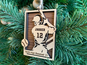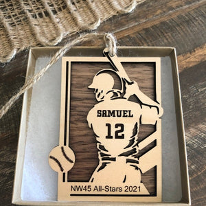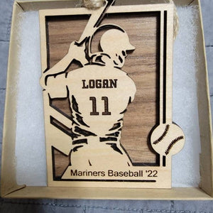 Personalized Baseball Ornament, Wooden Sports Ornament, Sports Gift