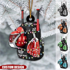 Personalized Baseball/Softball Bag with Helmet & Gloves Acrylic Christmas Ornament, Gift For Baseball Lovers