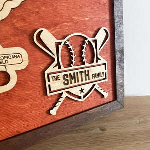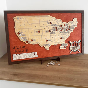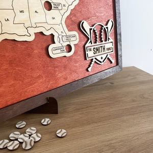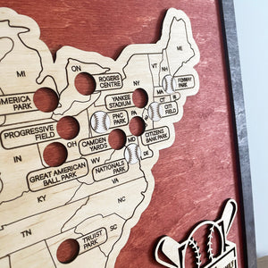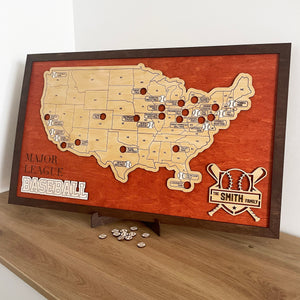 Personalized Baseball Major League Stadium Travel Pin Map, Great American Ballparks Bucket List Wooden Map Tracker