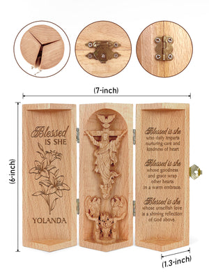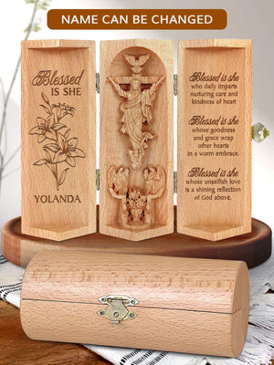 Personalized Blessed Is She Openable Wooden Cylinder Sculpture of Jesus Christ, Christian Gifts, Religious Gifts