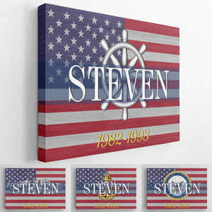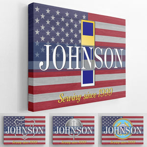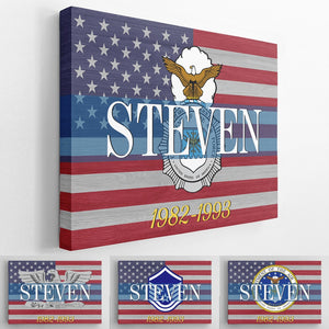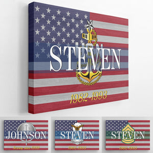 Personalized Canvas Frame - USA Flag With Military Ranks/Insignia - Personalized Name & Ranks