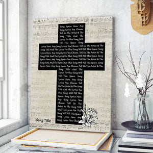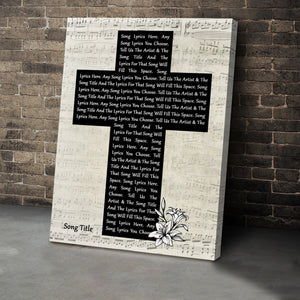 Personalized Christian Memorial Cross Music Wall Art With Song Lyrics, Music Wall Decor