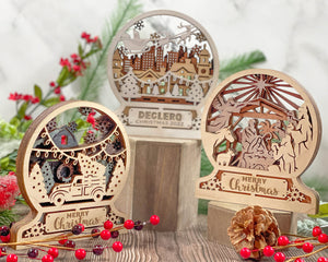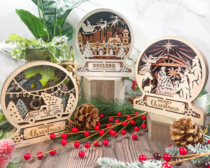 The Christmas Snow Globe collection features three popular Christmas themes that include a Santa sleigh scene, Christmas tree farm scene and the Nativity scene. All snow globes have the ability to be customized with a family name or special message. At Homestyle Customs we are pride ourselves on delivering you quality & sellable products with the marketing support to back it up. Included in your purchase is our professional photos, Rendered sheets and marketing sell sheets for you to use at your discretion to save time, make sales and look professional in front of your customers.