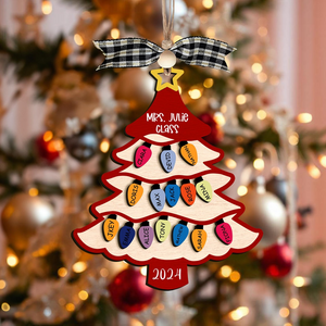 Personalized Christmas Tree Teacher Ornament, 2-Layer Wooden Ornament, Teacher Xmas Gift Ideas