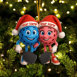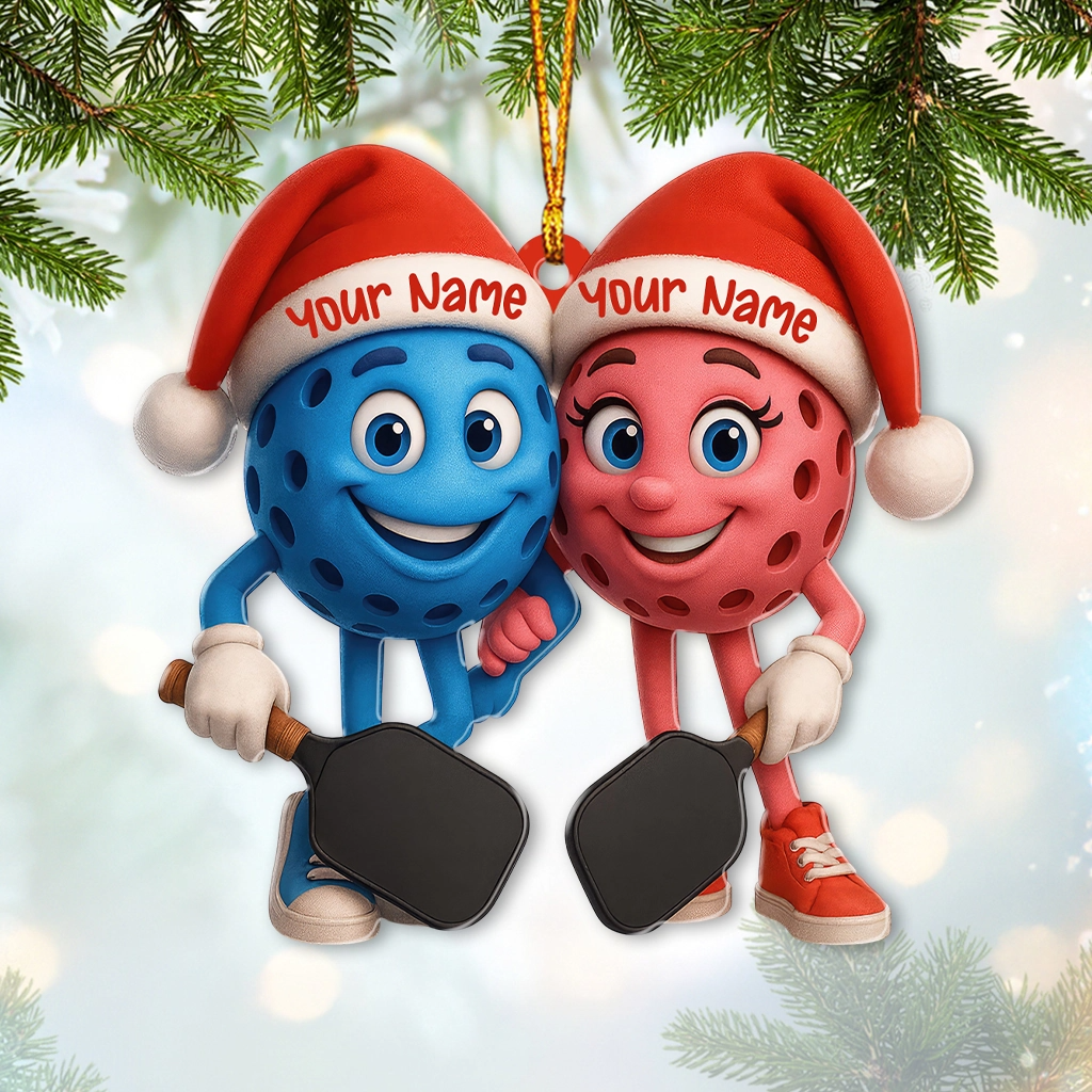 Personalized Cute Couple Pickleball Ornament Custom Name Acrylic Ornament, Pickleball Christmas Gift Xmas Decor
