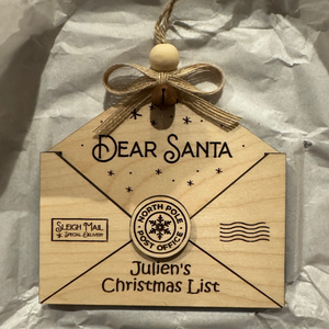 Personalized Dear Santa Letter Wooden Ornament, Letter to Santa Ornament, Christmas Gift