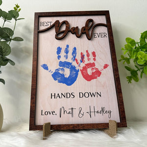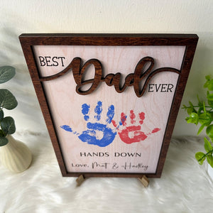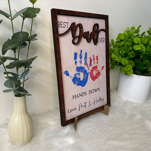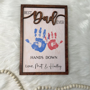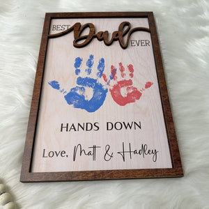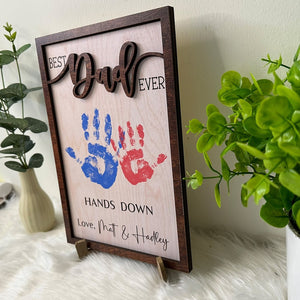 Personalized DIY Handprint Sign, Father's Day Gift, Father's Day Wooden Sign, Hands Down Best Dad Ever, Personalized Engraved Wooden Sign