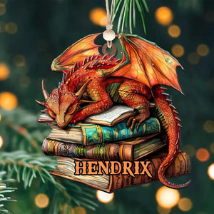 - The ornament is beautifully crafted with intricate 3D detailing, showcasing a dragon wrapped around a book. The dragon is usually depicted in an elegant, fierce pose, lending a sense of fantasy and magic to the design. The book represents knowledge, adventure, and storytelling, making it a perfect symbol for any reader or fantasy lover.