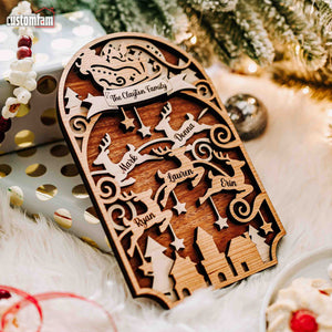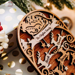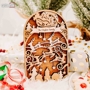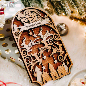 Personalized Family Christmas Ornaments, Reindeer Wood Ornament, Family Gifts