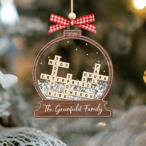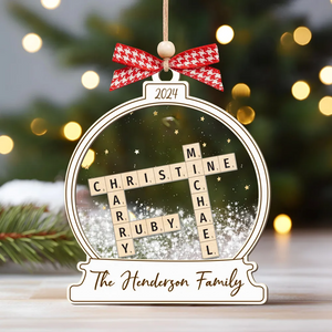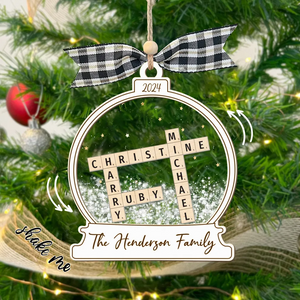 Personalized Family Crossword Ornament, Snow Globe Ornament, Christmas Shaker Ornament, Christmas Gift