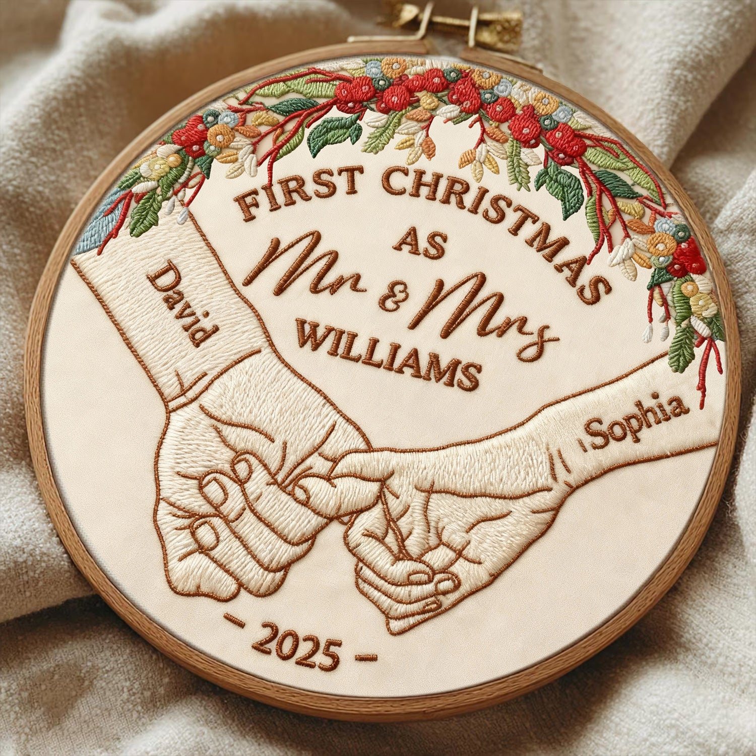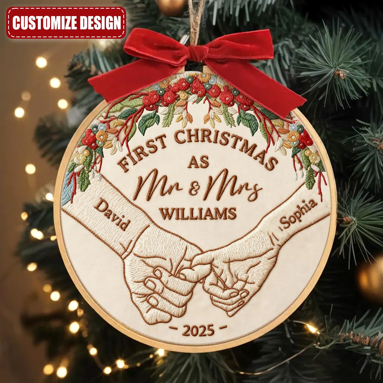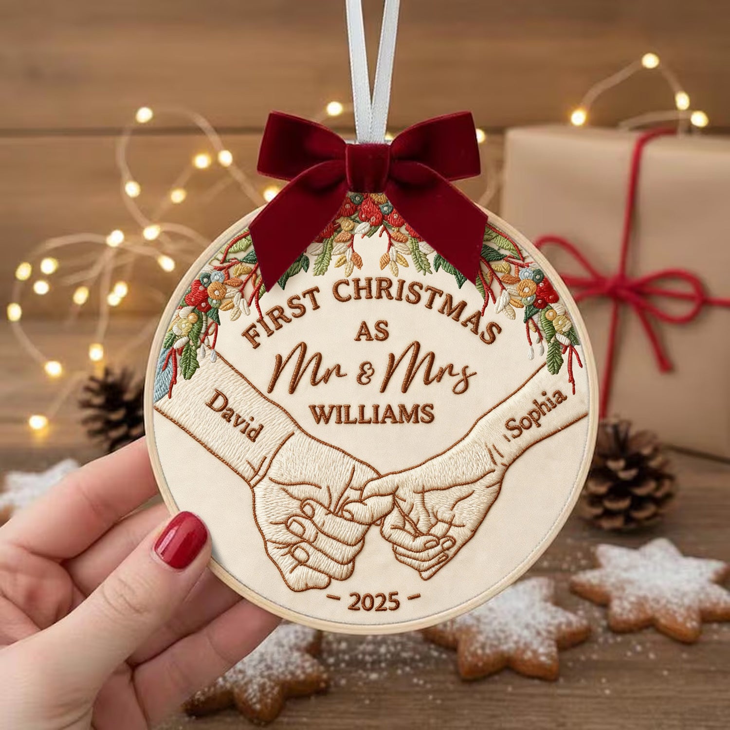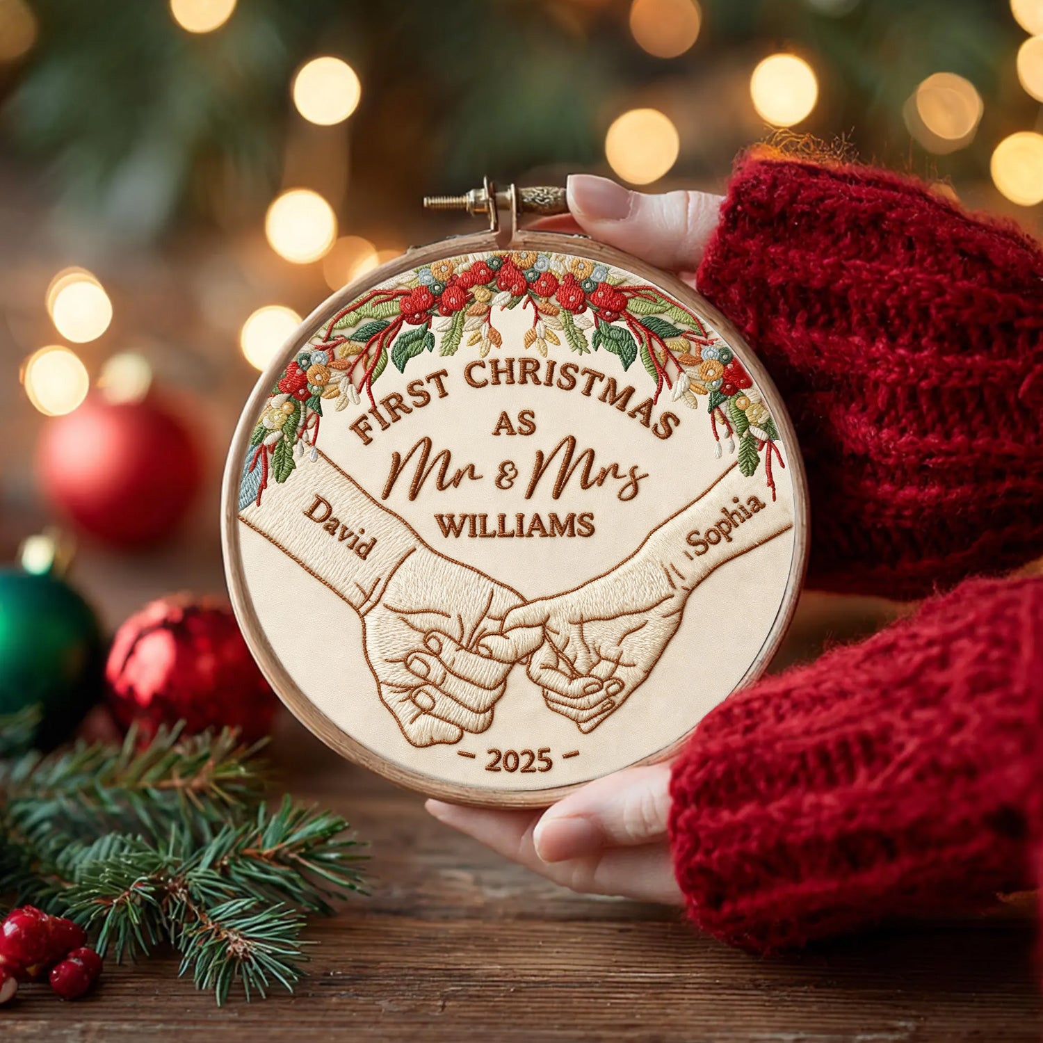 Personalized First Christmas As Mr Mrs Embroidery Hoop Ornament, Couple Ornament, Newly Wed Gift