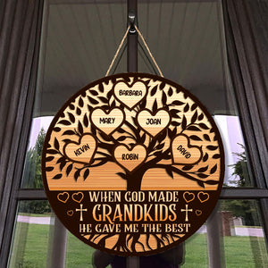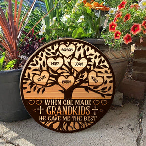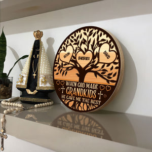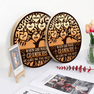 The "When God Made Grandkids, He Gave Me The Best" wooden sign is a heartfelt and personalized gift for grandparents, celebrating the love they share with their grandchildren. Crafted from high-quality wood, this beautifully laser-engraved plaque features a family tree design with heart-shaped engravings that hold the names of the grandkids, making it a unique and sentimental keepsake.