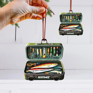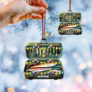 Personalized Fishing Tackle Box Acrylic Ornaments, Fisherman Christmas Ornaments, Fishing Ornaments Christmas