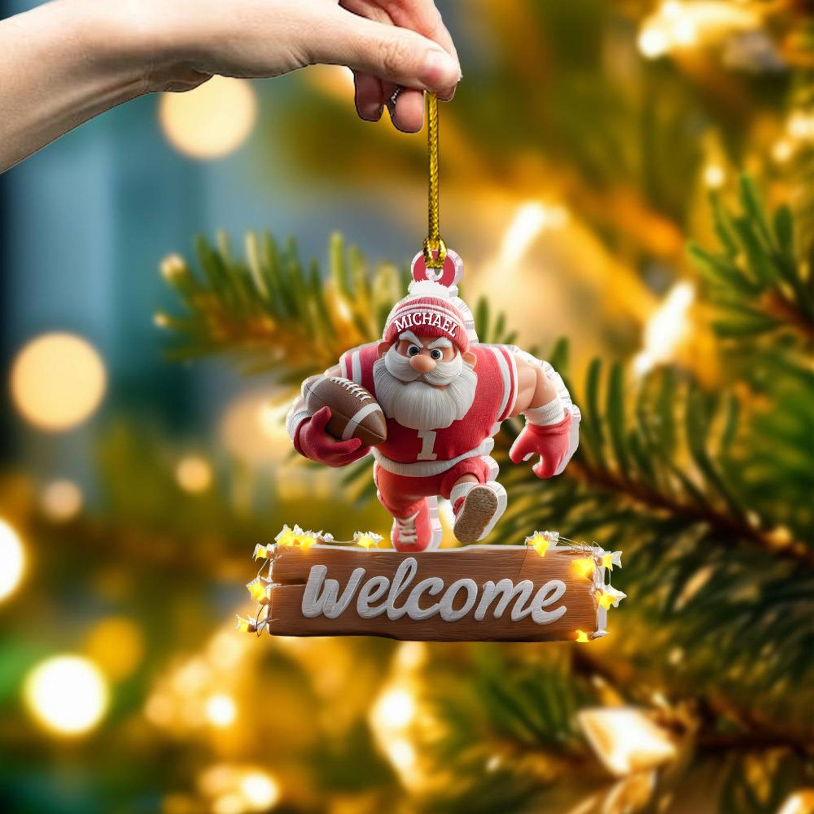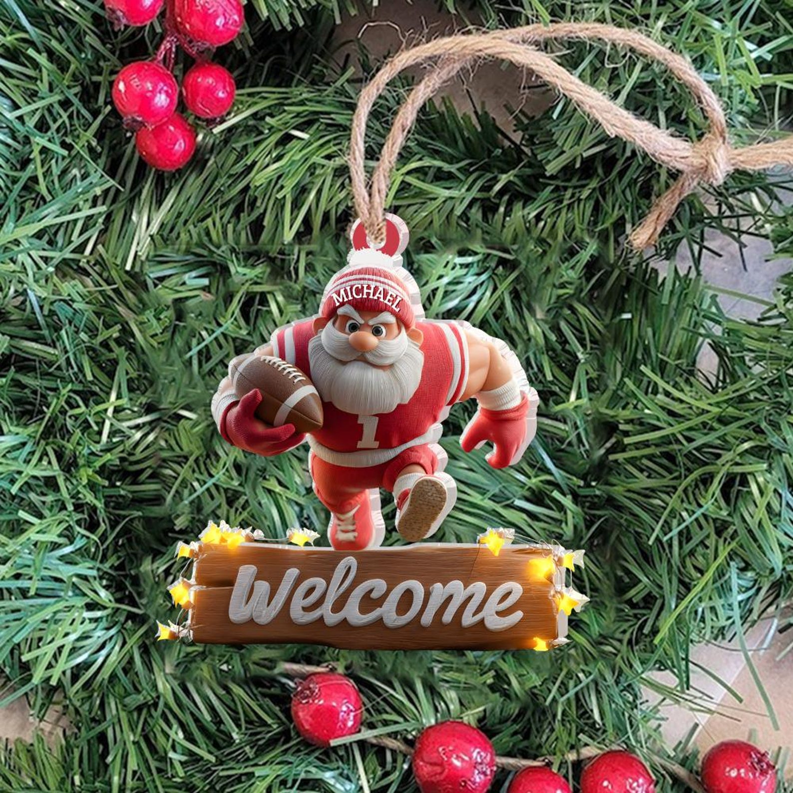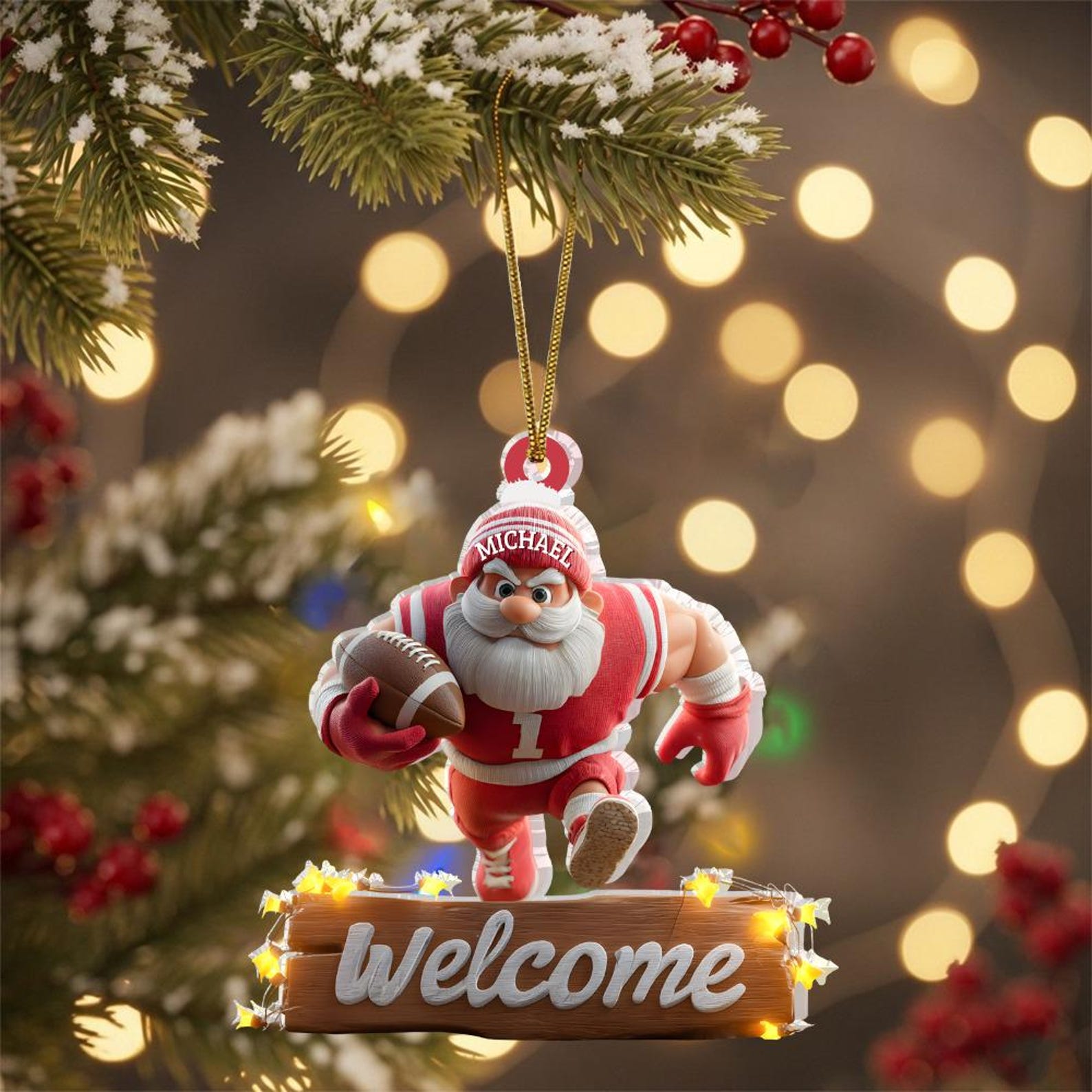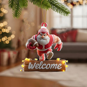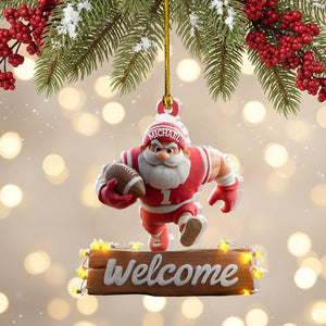 Football Santa Ornament, Christmas Tree Decoration, Acrylic Ornament, Christmas Ornament
