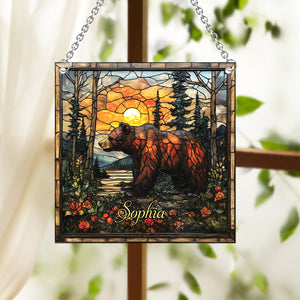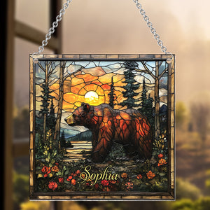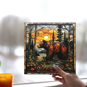 Personalized Forest Bear Window Hanging Suncatcher Ornament, Bear Decor
