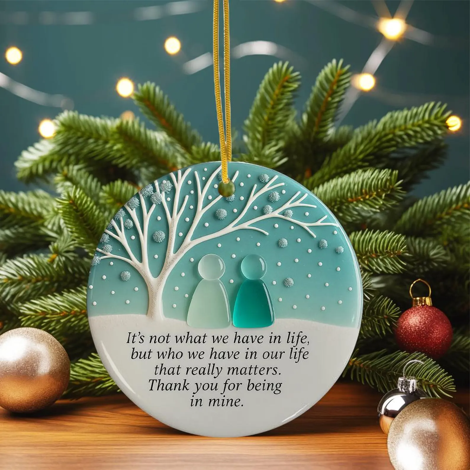 Personalized Friendship Acrylic On Ceramic Friendship Decor Xmas Ornament, Sea Glass Christmas Ceramic Ornament
