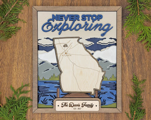 Personalized Georgia States Wood Frame, 50 States 2 Layers Wood Plaque, Gift For Nature Lovers