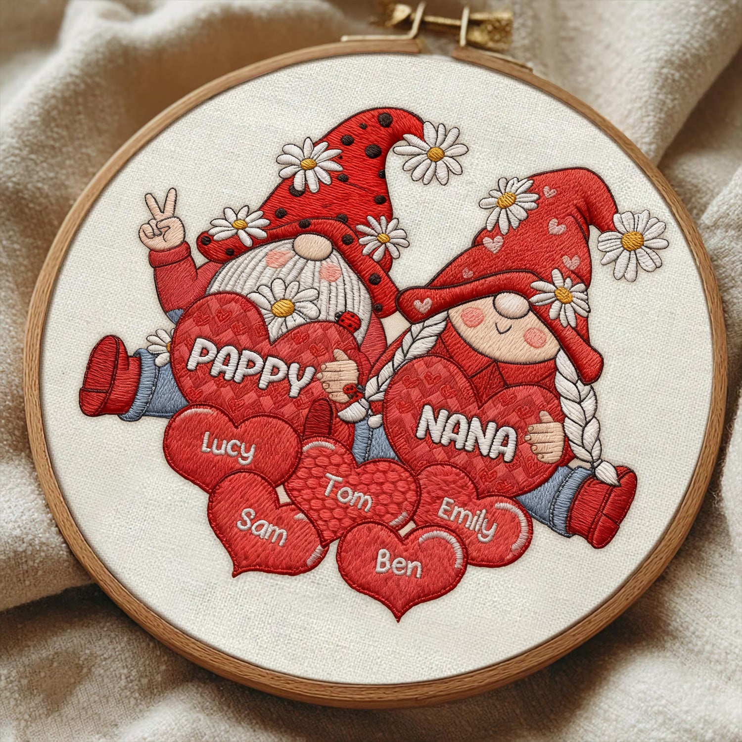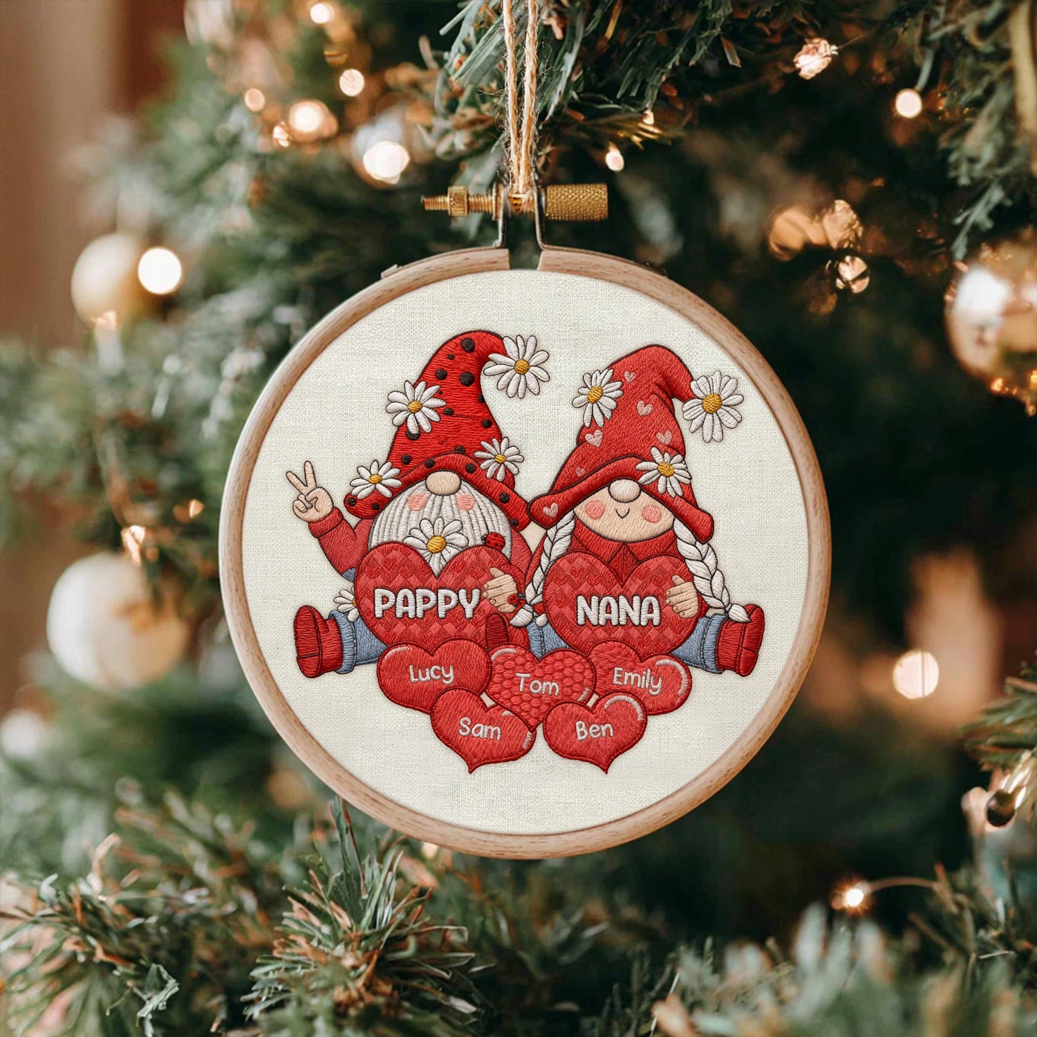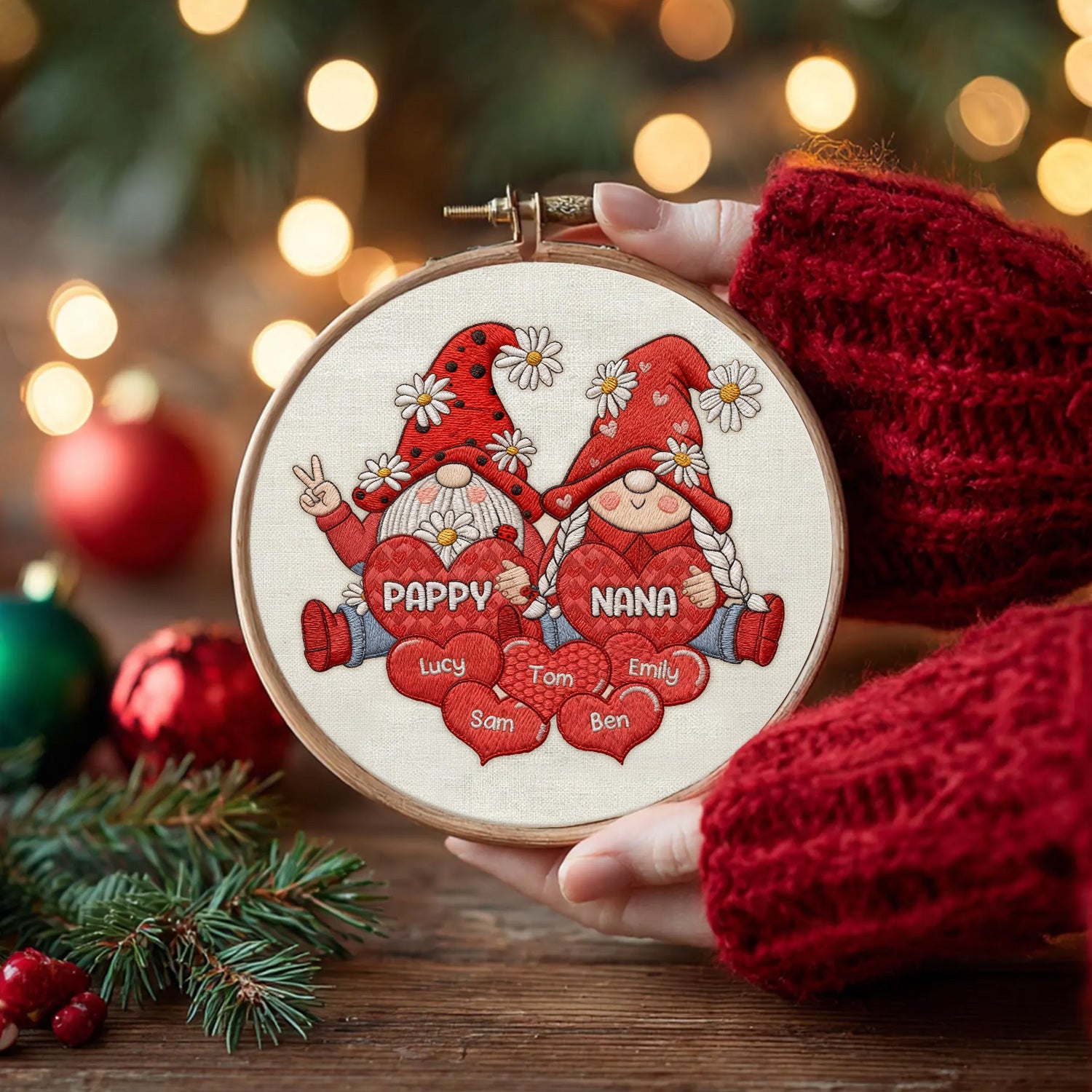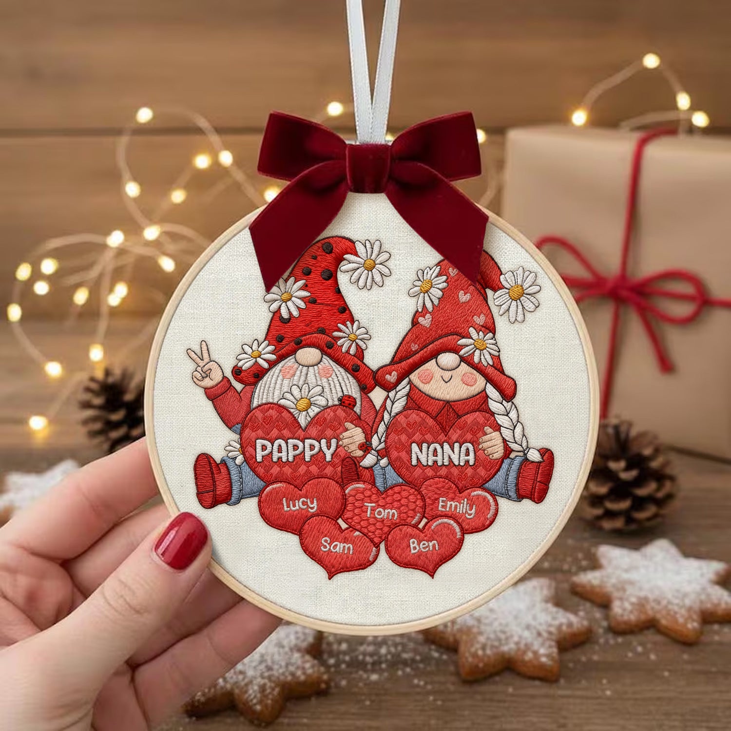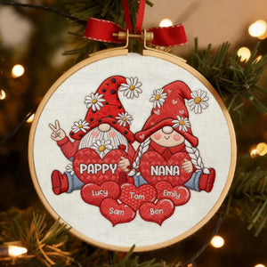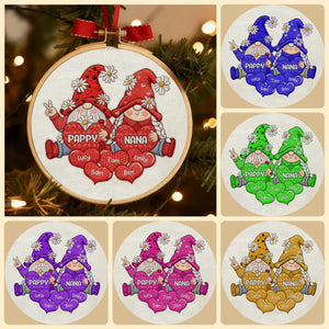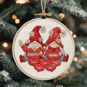 Personalized Gnome Grandparents Embroidery Hoop Ornament, Sweet Heart Kids Ornament, Christmas Presents For Grandparents