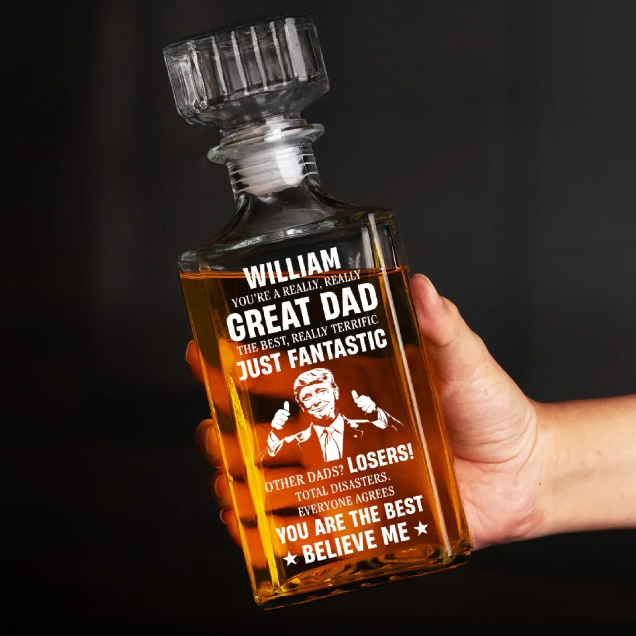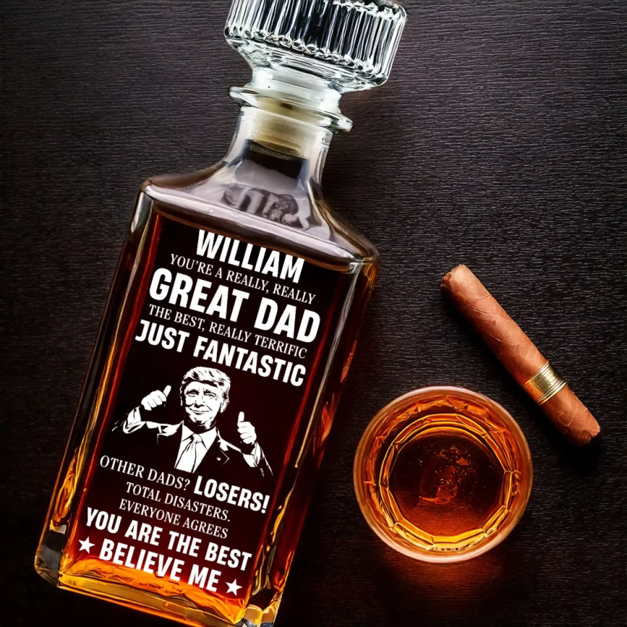 Personalized Great Dad Whiskey Decanter Set American Glassware Wine Glasses Set