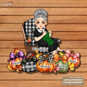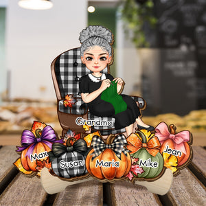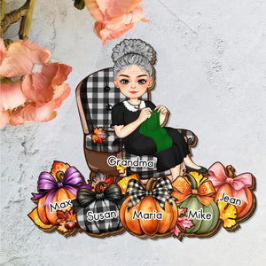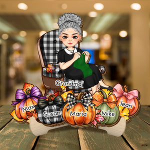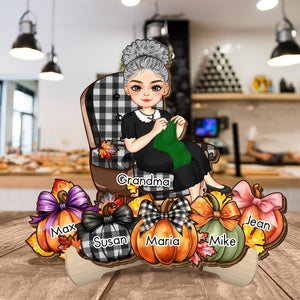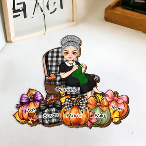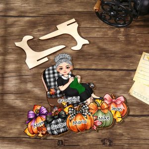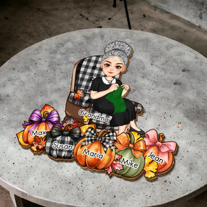 Personalized Halloween Pumpkin 2 Layered Wooden Plaque, Gifts For Knitters And Crocheters, Grandma Gifts