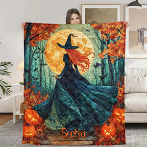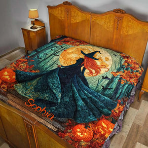 Personalized Halloween Witch Quilted Blanket, Halloween Blanket, Halloween Home Decor