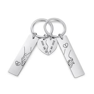 Personalized Hand in Hand Couple Keychain, Matching Keychains, Valentine's Day Gifts