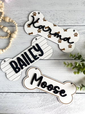 This beautiful bone sign displaying your dogs name would be perfect displayed on their crate to dress it up. Makes the perfect gift for yourself or that dog lover in your life.