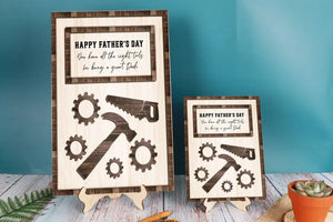 Personalized Happy Father's Day 2 Layered Wooded Sign, Dad Tools Plaque, Gifts For Dad