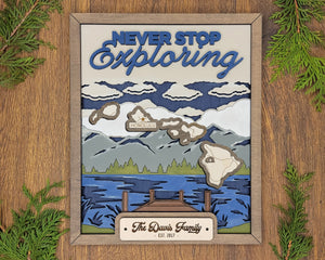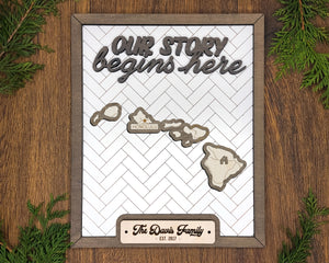 Personalized Hawaii States Wood Frame, 50 States 2 Layers Wood Plaque, Gift For Nature Lovers
