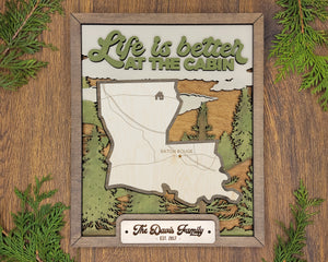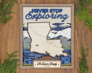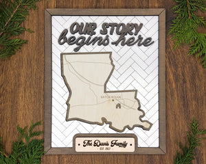 Personalized Louisiana States Wood Frame, 50 States 2 Layers Wood Plaque, Gift For Nature Lovers