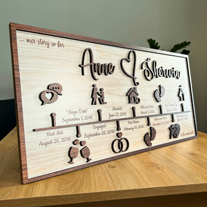 Personalized Love Story Timeline 2 Layered Frame Wood Sign, Custom Love Story, Wedding Anniversary Gifts