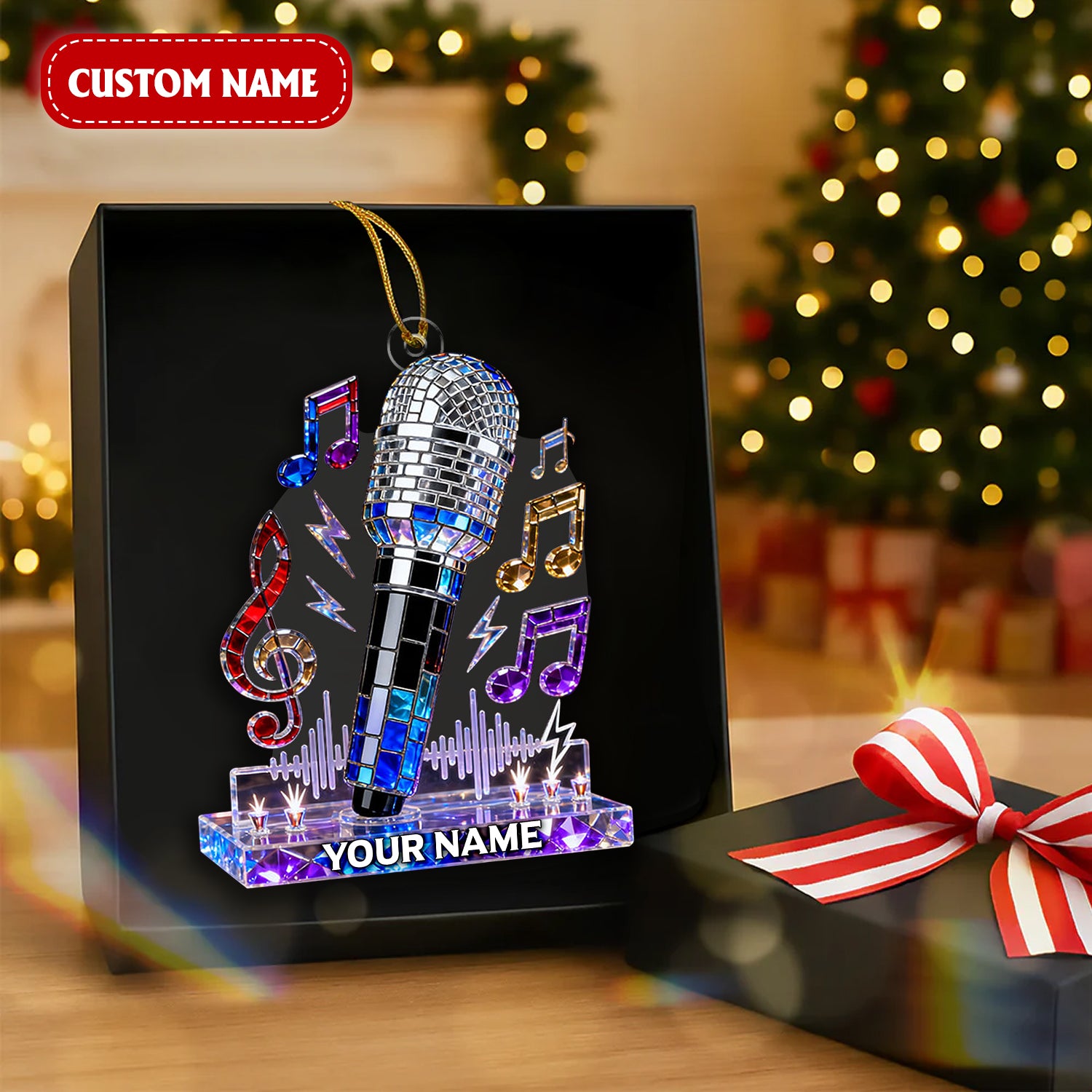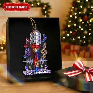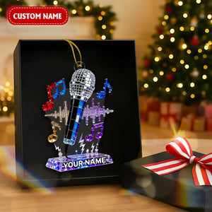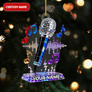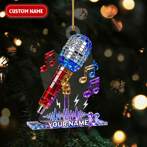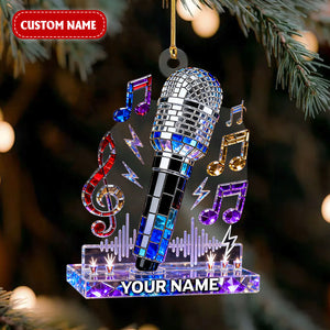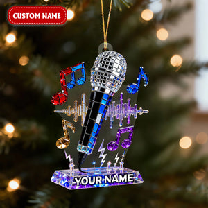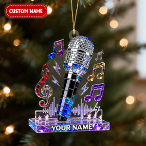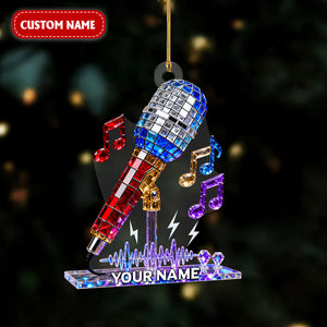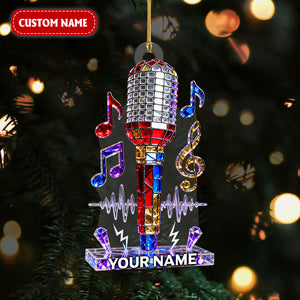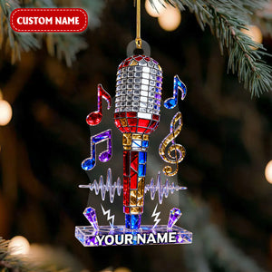 Personalized Microphone Stained Glass Effect Acrylic Ornament, Singing Christmas Ornament, Music Lover Xmas Gift