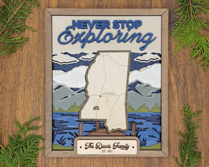 Personalized Mississippi States Wood Frame, 50 States 2 Layers Wood Plaque, Gift For Nature Lovers