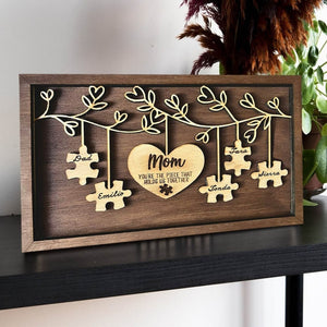 Personalized Mom Puzzle Name Sign, You Are The Piece That Holds Us Together Home Wall Decor, Wooden Family Tree Sign, Custom Mother Day Gift