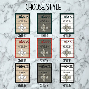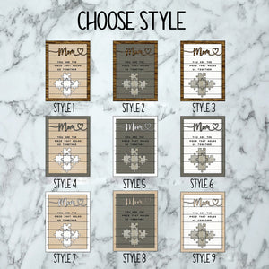 Our Mom You Are the Piece that Holds Us Together Puzzle Sign makes the perfect anniversary, birthday, Mother's Day, Father's Day, or any day gift!