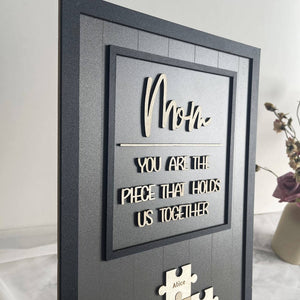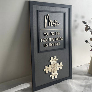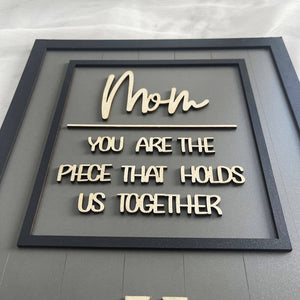 You Are the Piece that Holds Us Together Puzzle Pieces Personalized Mom Sign, Name Sign Mother Day Gift, Mom Puzzle Sign, Mother's Day Gift