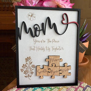 Personalized Mom Puzzle Wood Sign With Kids Name, Gifts For Mother's Day, You Are The Piece That Holds Us Together Home Wall Decor