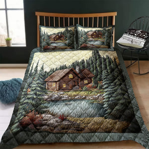 Mountain Log Cabin Quilt Bed Sets, Bedding Set, Bedroom Decor
