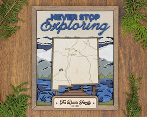 Personalized New Mexico States Wood Frame, 50 States 2 Layers Wood Plaque, Gift For Nature Lovers