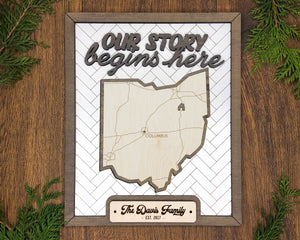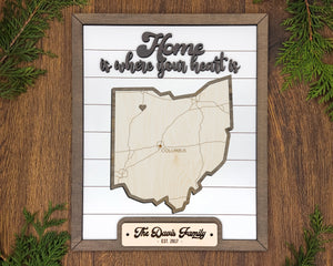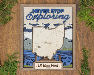 Personalized Ohio States Wood Frame, 50 States 2 Layers Wood Plaque, Gift For Nature Lovers