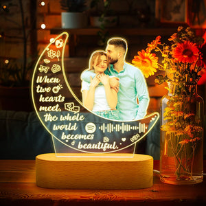 • Illuminate your nights with the Personalized Photo Acrylic Moon Lamp, a custom night light perfect for couples. This unique lamp features a beautifully crafted moon design with a photo of your choice, creating a romantic and memorable gift. Made from high-quality acrylic, it provides a soft, warm glow, perfect for adding a touch of elegance to any home decor.