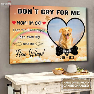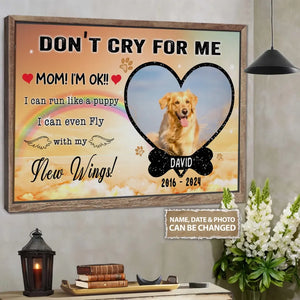 Personalized Photo Canvas, Don't Cry For Me Memorial Framed Canvas, Dog Loss Gifts, Dog Lover Gift